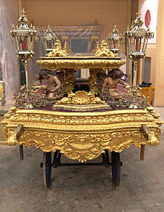 Gilded sedan from the Carriage Museum in the Royal Palace, Madrid.